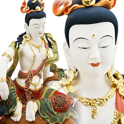 獅吼觀音,漢譯亦名騎獅觀音、獅子無畏觀音,亦稱『阿摩提觀音』,為觀音菩薩的化身之一,是為降伏一切龍族所生的病苦,使三界眾生脫離苦海所化現的觀音,具有極為威猛的力量。