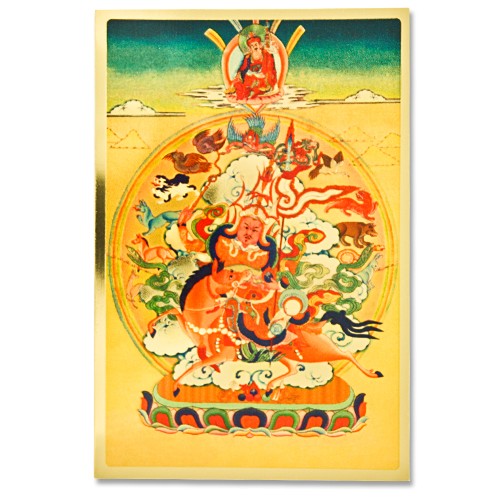 西康史詩中的大英雄─給薩王,是藏傳佛教護法,主掌幸運和運氣之神。其化現世間之緣起略述如下: