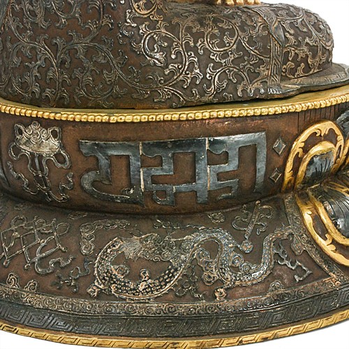 文殊菩薩-雕八吉祥紋法衣-半鎏金-40cm