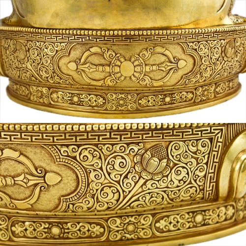 鎏金為古代金屬工藝裝飾技法之一,又稱「火鍍金」,此技術始於春秋戰國,興盛於漢代(稱「金涂」或「黃涂」)。鎏金是將金和水銀依1:5比例混合成金汞齊,然後用推擠法均勻塗抹於銅器表面,再將銅器加熱烘烤,使水銀蒸發,金就保留下來附著在器面上,最後再壓光,使金鍍層更為緊密、光亮。