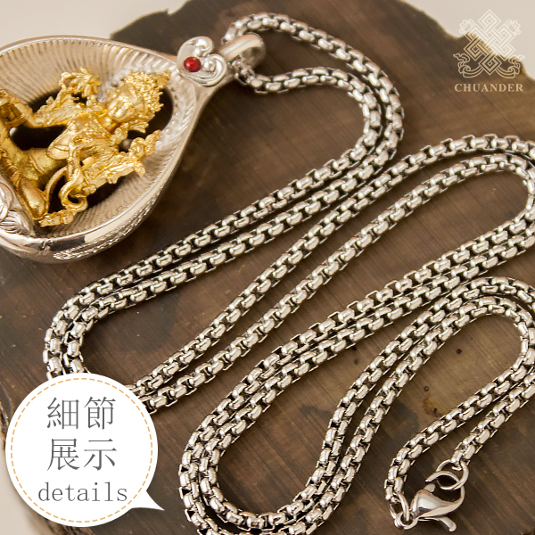 佛牌項墜寬約2.5cm、長約4cm、厚約1.4cm,鍊子長約32cm(不可調整),由於丈量方式的不同,因此尺寸可能有2%以內之誤差。